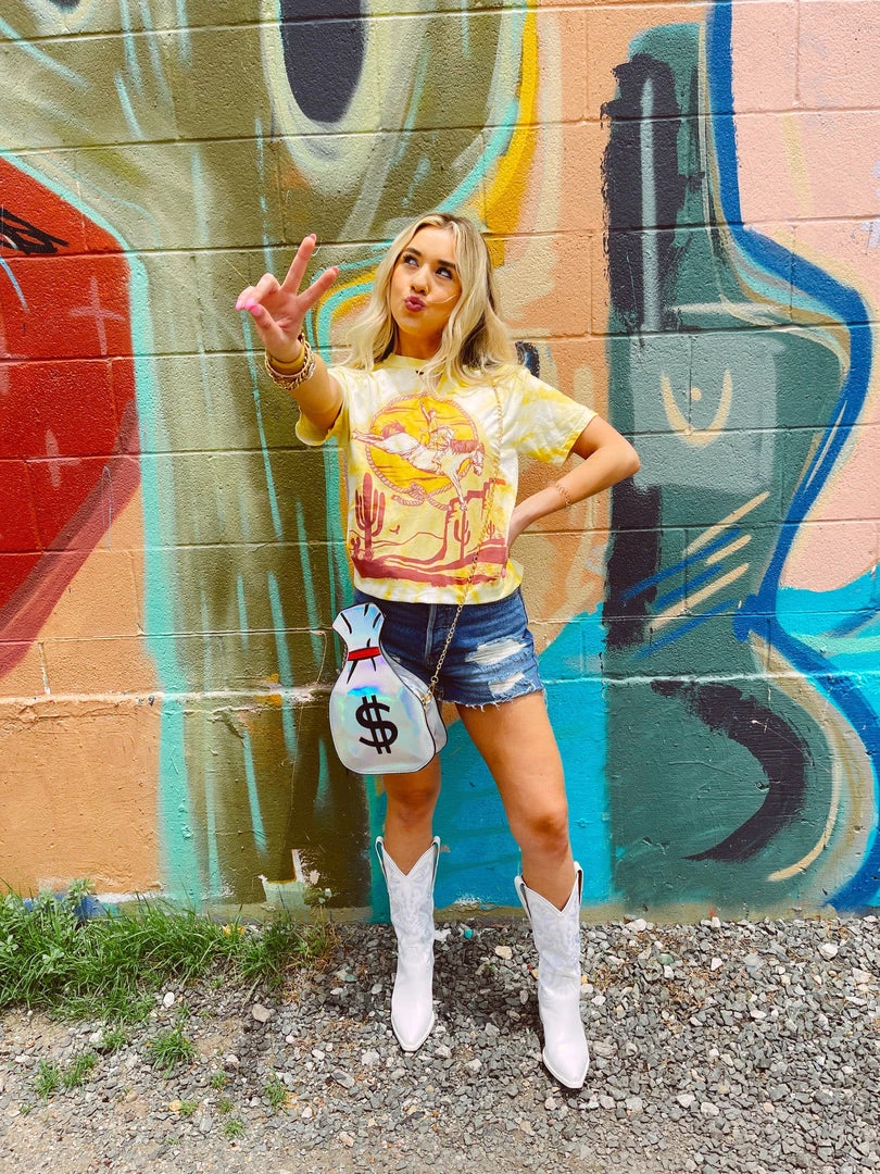 Saddle up cowgirl let’s ride into the wild this summer in this cute new tee! Love the tie dye trend! This is a summer must have!