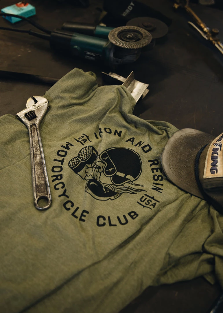 The Motorcycle Club Tee carries a bit of nostalgic vibes everywhere it goes. The 50/50 cotton & polyester blend provides it with that everyday expected comfort, and our customer Iron & resin front chest and back graphic gives it that throwback touch to the good ol’ days.