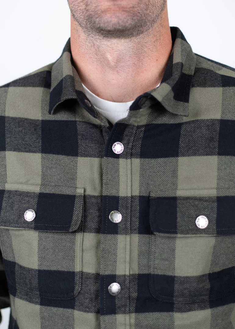 Built from a tough-wearing 6.5oz yarn dyed cotton flannel and insulated with a micro polar fleece lining this piece does campfires and post-surf warming up better than anything. We added convenient snap buttons to make bundling up that much easier when those hands don’t seem to work like they used to after a long surf. Available in two colors, Red and Green – and trust us, you don’t want to miss out.