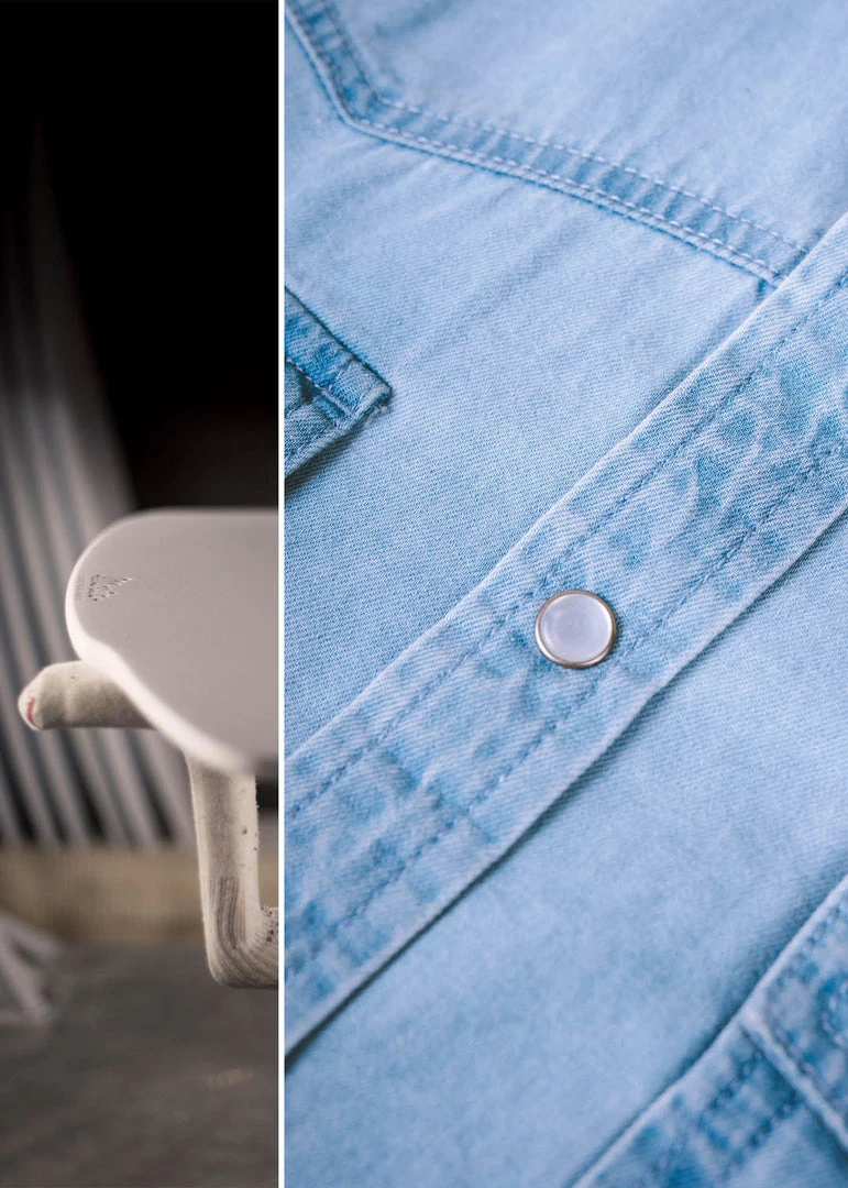 - Double needle felled stitching on critical points of shoulders, arm pits and sides