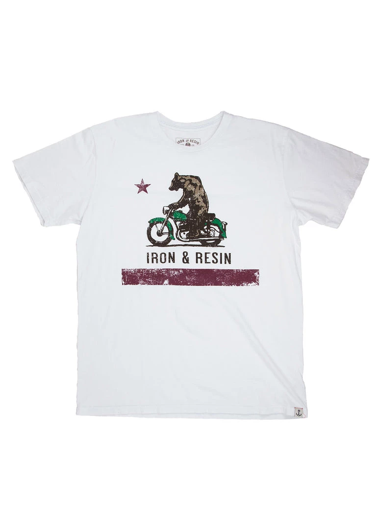 - Iron & Resin “Moto Bear” custom graphic printed on chest