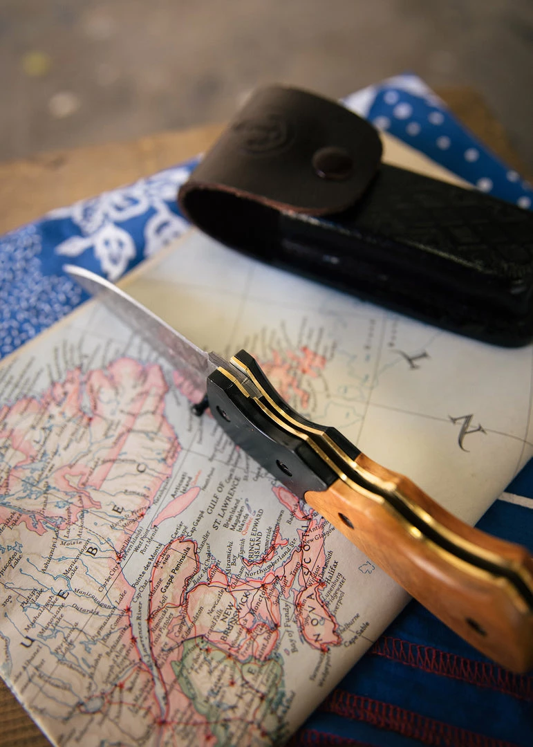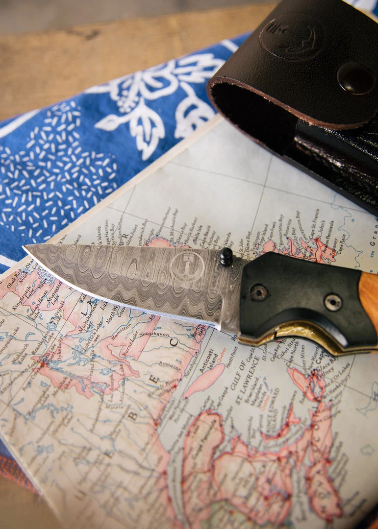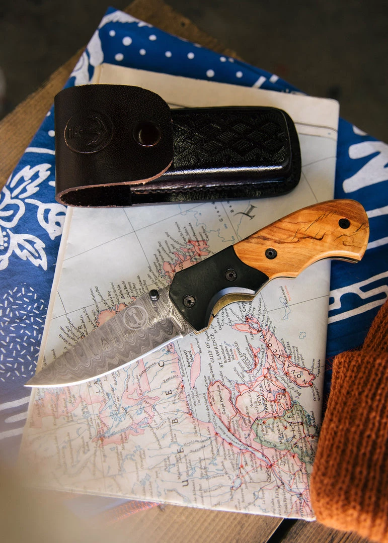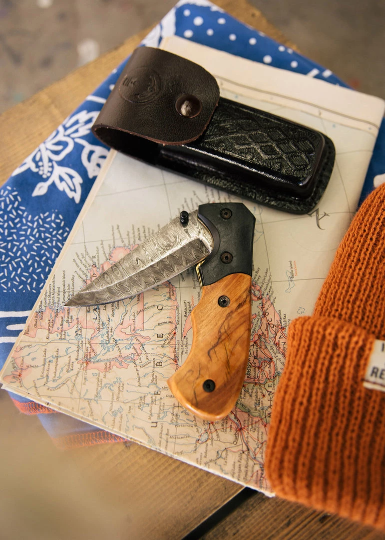 Around here, we believe that a good knife should never be left at home. But a really great knife? It’s a daily necessity. And when it’s one with a hand-forged folding Damascus steel blade, an Olive Wood and steel handle, and a leather belt sheath? Now we’re in business. With a 3 1/2″ length blade and a 4 1/2″ folded length, this is the perfect daily EDC companion, you’ll soon be asking yourself how you ever lived without it.