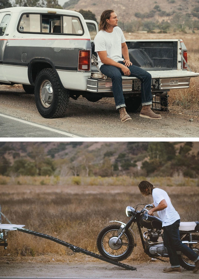 We knit our Perfect Tee fabric right here in Southern California from premium U.S. grown cotton and then cut, sew, and dye ’em right down the road from us in L.A. Then we give them a pre-washed finish that makes them vintage soft, just like those favorite tees that have been kicking around in your drawers for years.