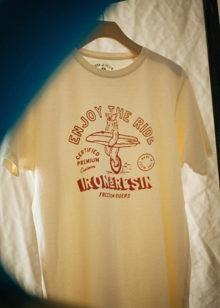 - Iron & Resin “Enjoy The Ride” custom graphic on front chest