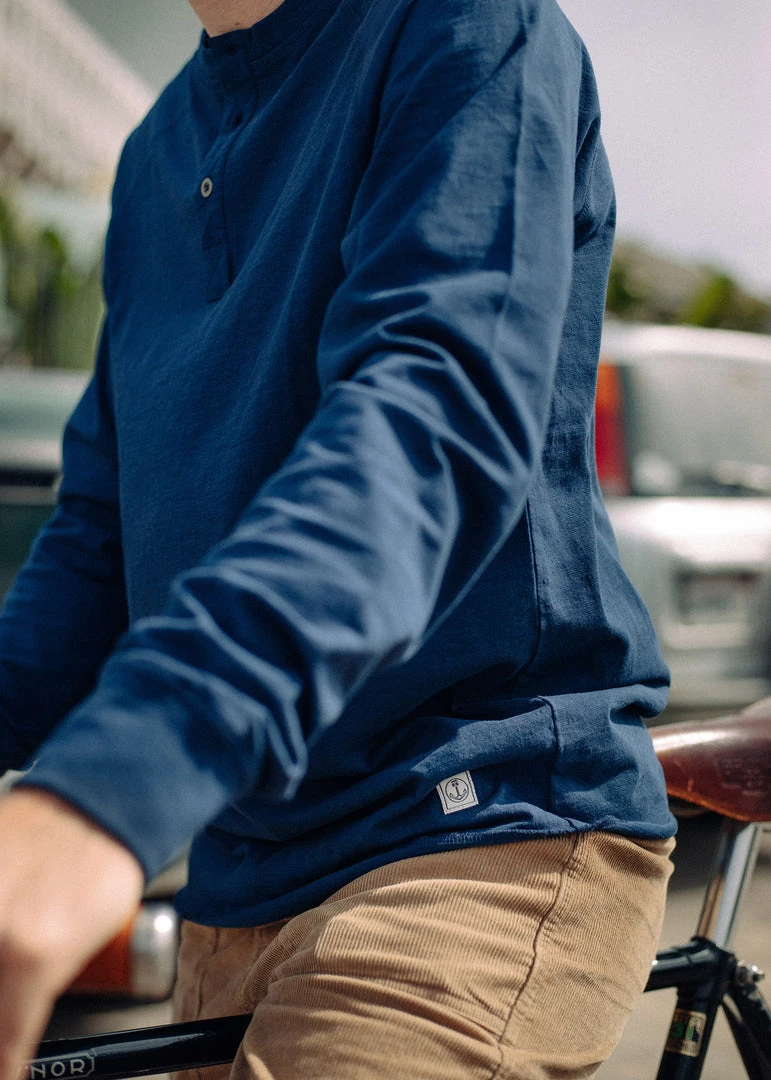 We’d like to say the Topock Henley fits slightly on the slimmer side. So, when ordering, we would consider going one size up from your true size. Plus, if you throw this thing in the dryer, there may be slight shrinkage. If you have any questions about what size to order, please reach out to us before placing your order.