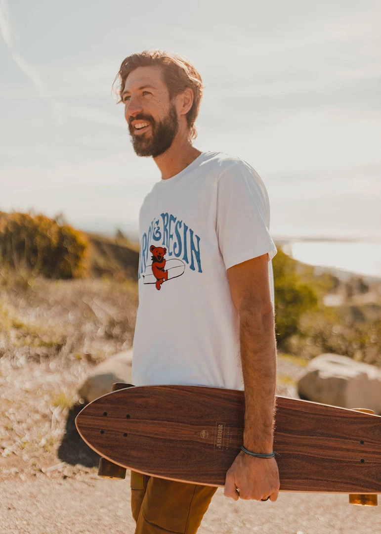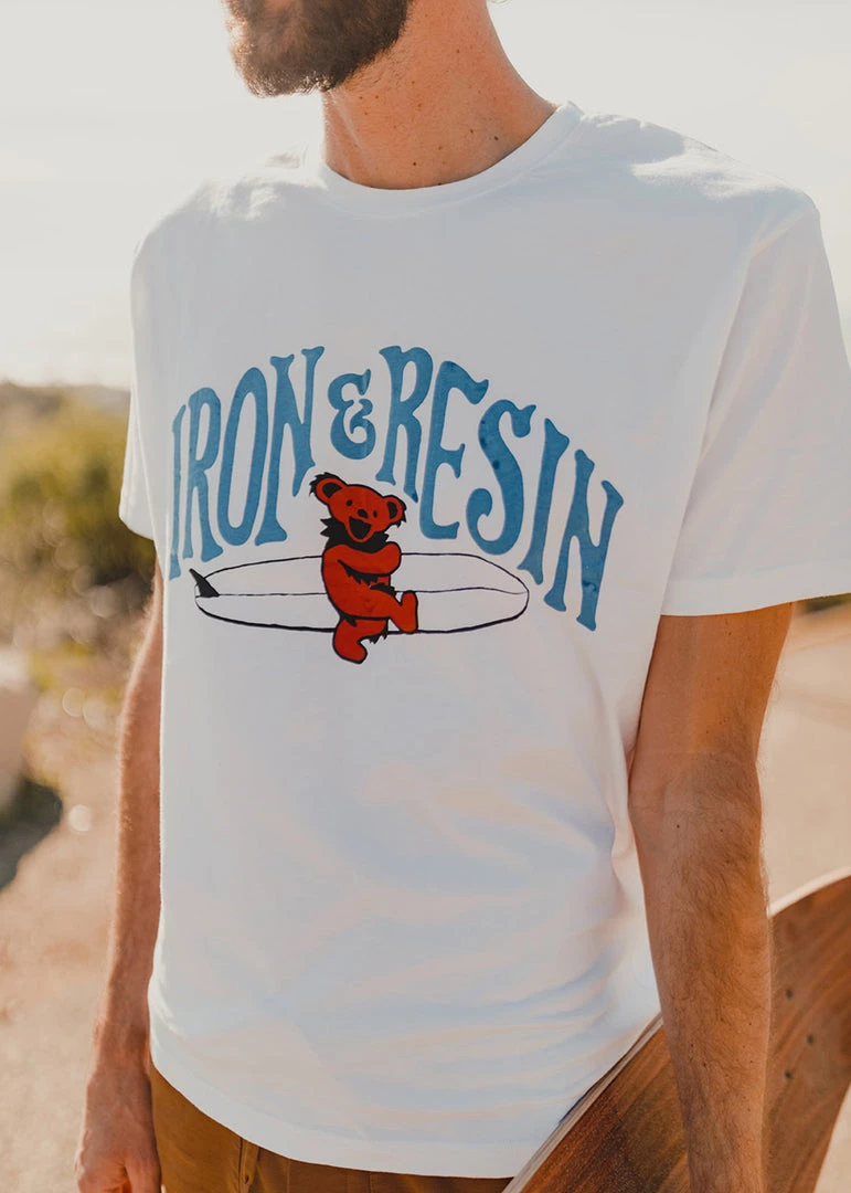 - Iron & Resin custom screen printed “Truckin” graphic on front chest