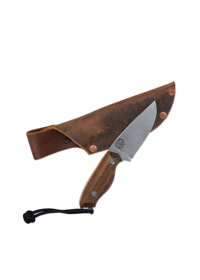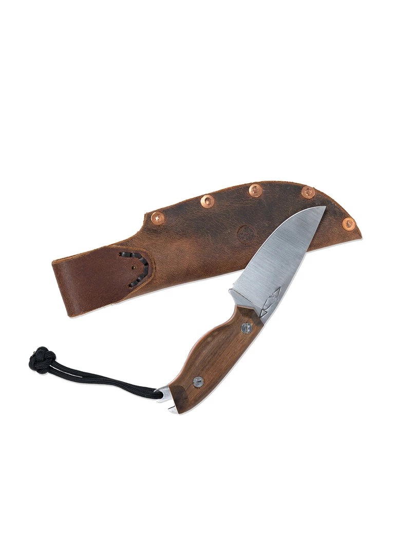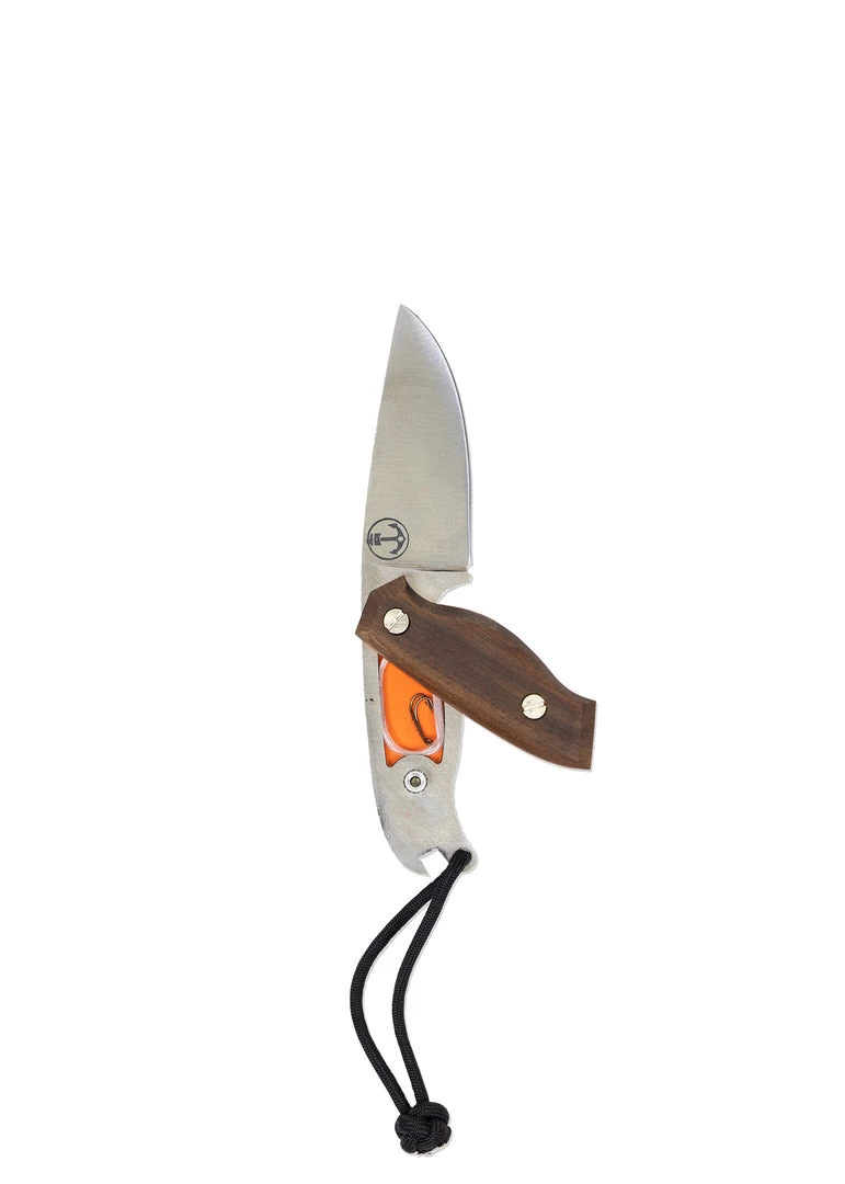 This handmade knife comes right out of Santa Ynez, CA by our buddy at Lost Sasquatch. Every element of this knife was crafted entirely by hand. At 7″ long, this is a true survival knife at heart. The Coyote comes with removable handle scales that store 12ft of fishing line and a pair of fishing hooks. At the end of the handle, there’s paracord wrapped with a waxed wick and a snare. Also, you’ll be able to pop open any beer bottle with the nifty opener at the butt-end of the handle. The perfect piece for going anywhere and doing anything.