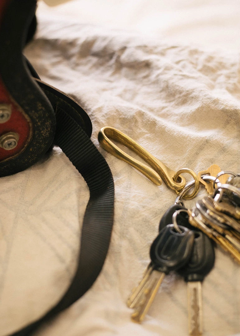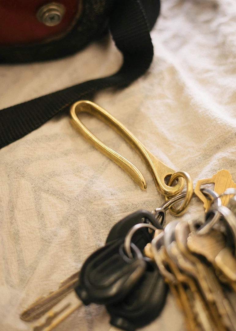 Handmade by skilled craftsman Smoky Sumi of Japan, this solid brass key hook will be your missing link in holding all those keys you have shuffling around in your pocket. Easily attach a keyring to this, loop it on your belt loop, and you’re good to go.